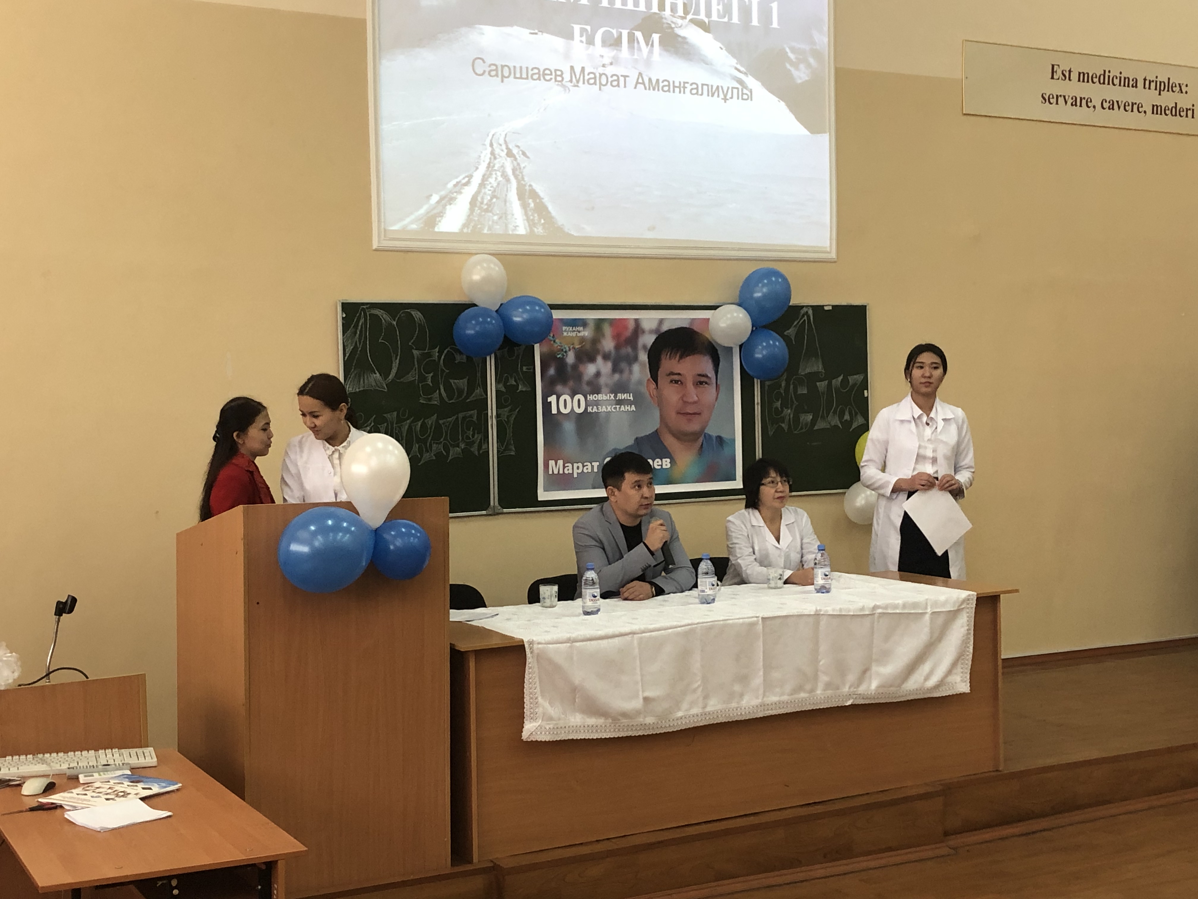 30 января 2019 г. в аудитории № 7 учебного корпуса №7 кафедрой «Биостатистика и основы научного исследования» была организована встреча победителя проекта «100 новых имен Казахстана» 2017 года врача — нейрохирурга Марата Амангалиевича Саршаева со студентами специальностей «Общественное здравоохранение», «Общая медицина», «Технология фармацевтического производства».