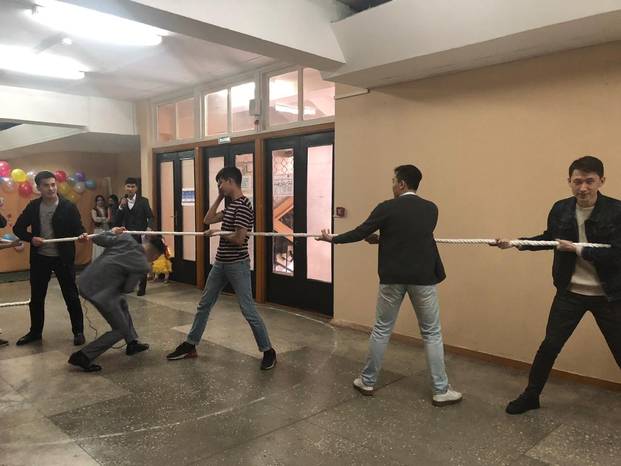 Следуя традициям казахского народа, на мероприятии звучали песни и мелодии домбры в исполнении студентов, были и танцы. Проводились соревнования в игре в асыки и перетягивании каната. Был проведен обряд «Обрезание пут» с соблюдением всех правил.