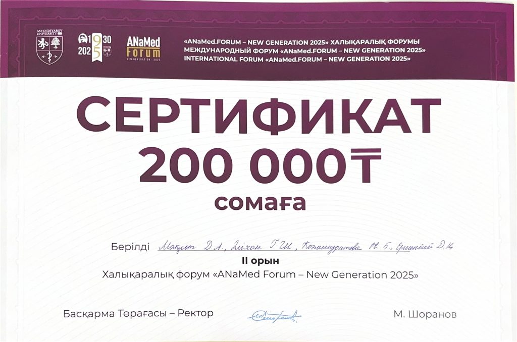Зерттеу нәтижелері ANaMed тезистер жинағында жарияланды.