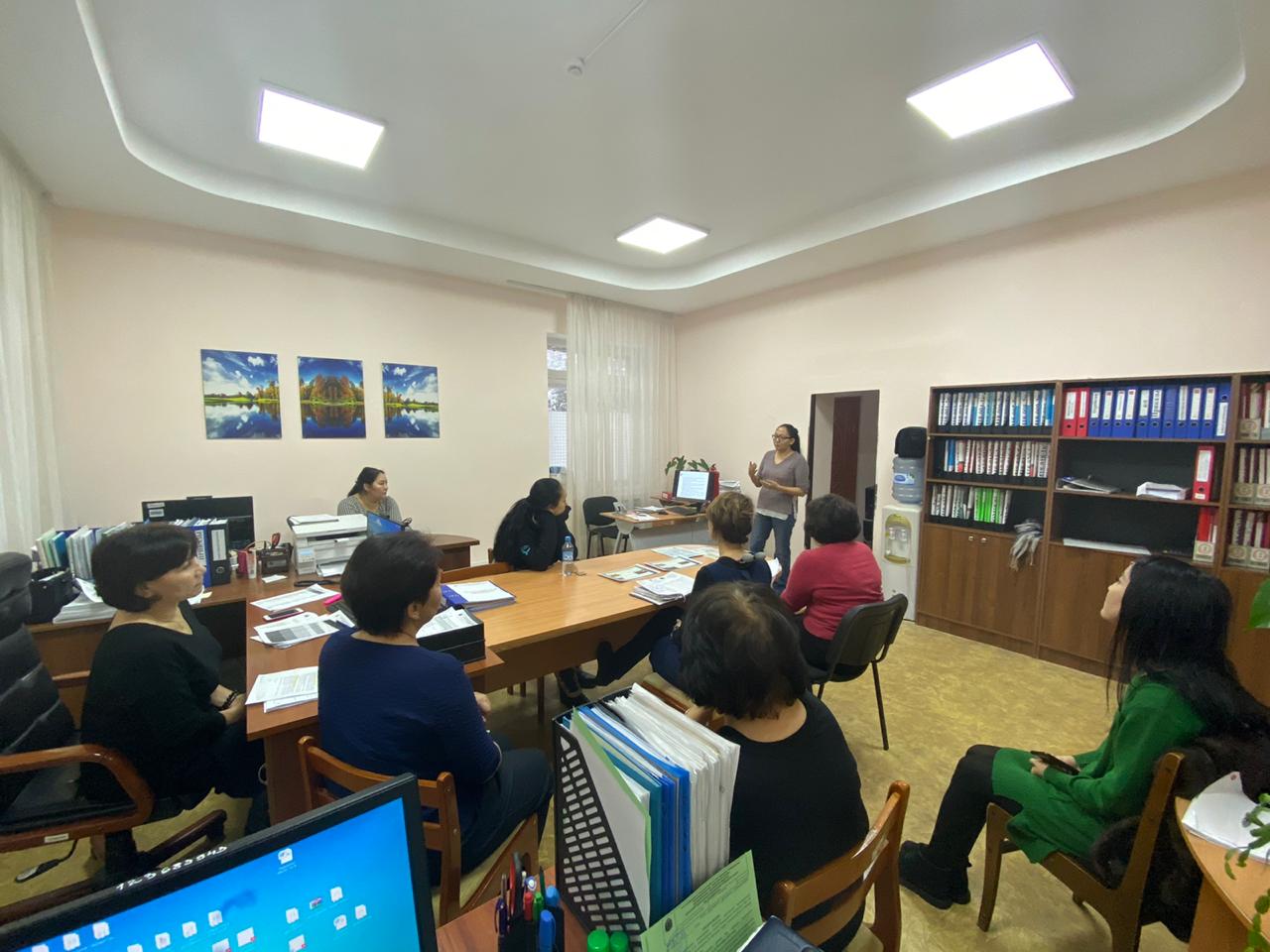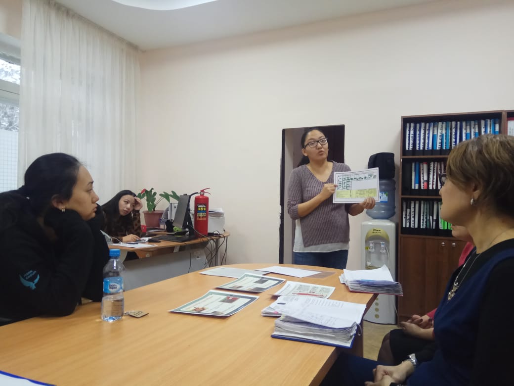 Еңбекті қорғау, азаматтық қорғаныс және өрт қауіпсіздігі бөлімінің инженері М.А.Избасарованың өрт сөндіргішті қалай қолданатыдығы, оның салмағына қарай 3 (үш) түрге бөлінетіндігі, қолмен ұстауға ыңғайлысы және әйел адамдарының көтере алу мүмкіндігі бар, (5 л дейін); өнеркәсіпте қолданылатыны (5-10л); жылжымалы және стационарлық (10 л астам), баллонның ішіндегісі ұнтақты, газ, су және көбік бөлінетіндігі, біздегісі ұнтақты болатындығын, эвакуация жоспарына сай апат жағдайындағы қосымша есіктің әрқашанда ашық тұратындығын айтып өтті.